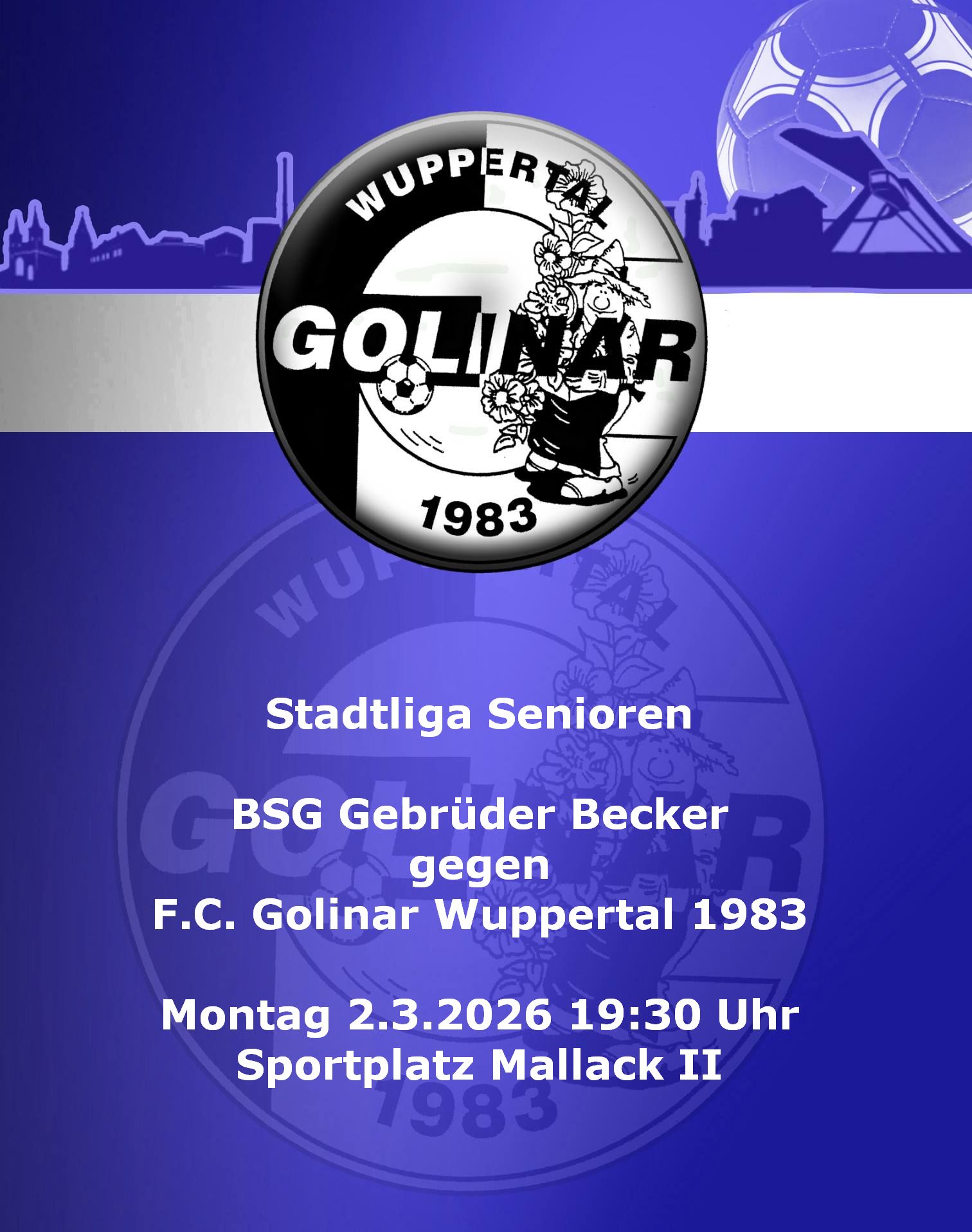 Im nächsten Punktspiel trifft die Erste des FCG auf die BSG Gebrüder Becker. Am Montag (2.3.) ist um 19:30 Uhr Anpfiff auf dem Sportplatz Mallack II ! ACHTUNG: DOPPELSPIELTAG !!!
